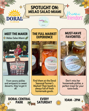 It’s a great fit for small businesses looking to connect with locals, build regular customers, and be part of a consistent Saturday market in Doral.