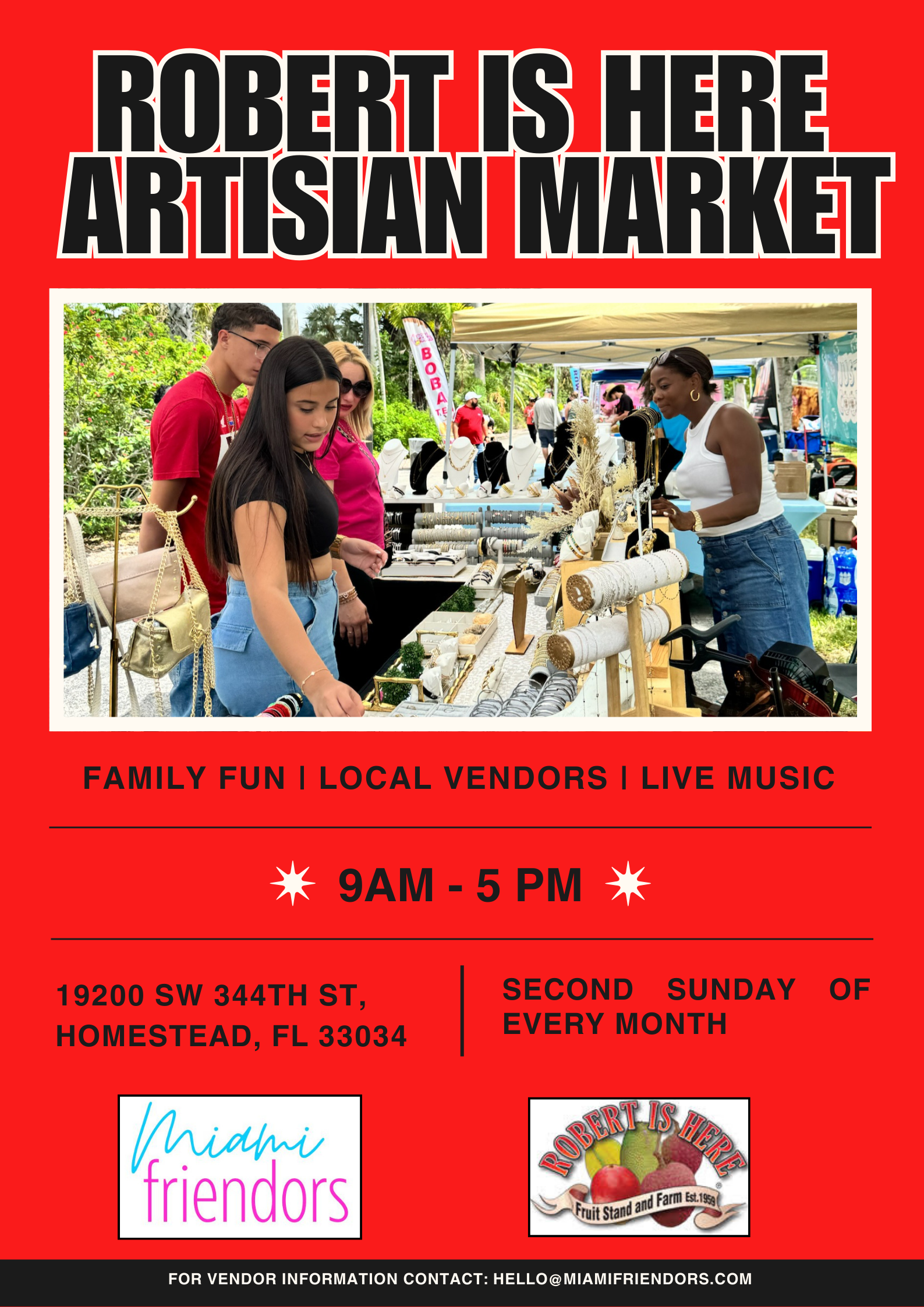 On behalf of Robert is Here and Miami Friendors, we are excited to welcome you to the Robert is Here Artisan Market! We’re thrilled to have you join us for this family-friendly event that brings together local makers, artisans, and the community.