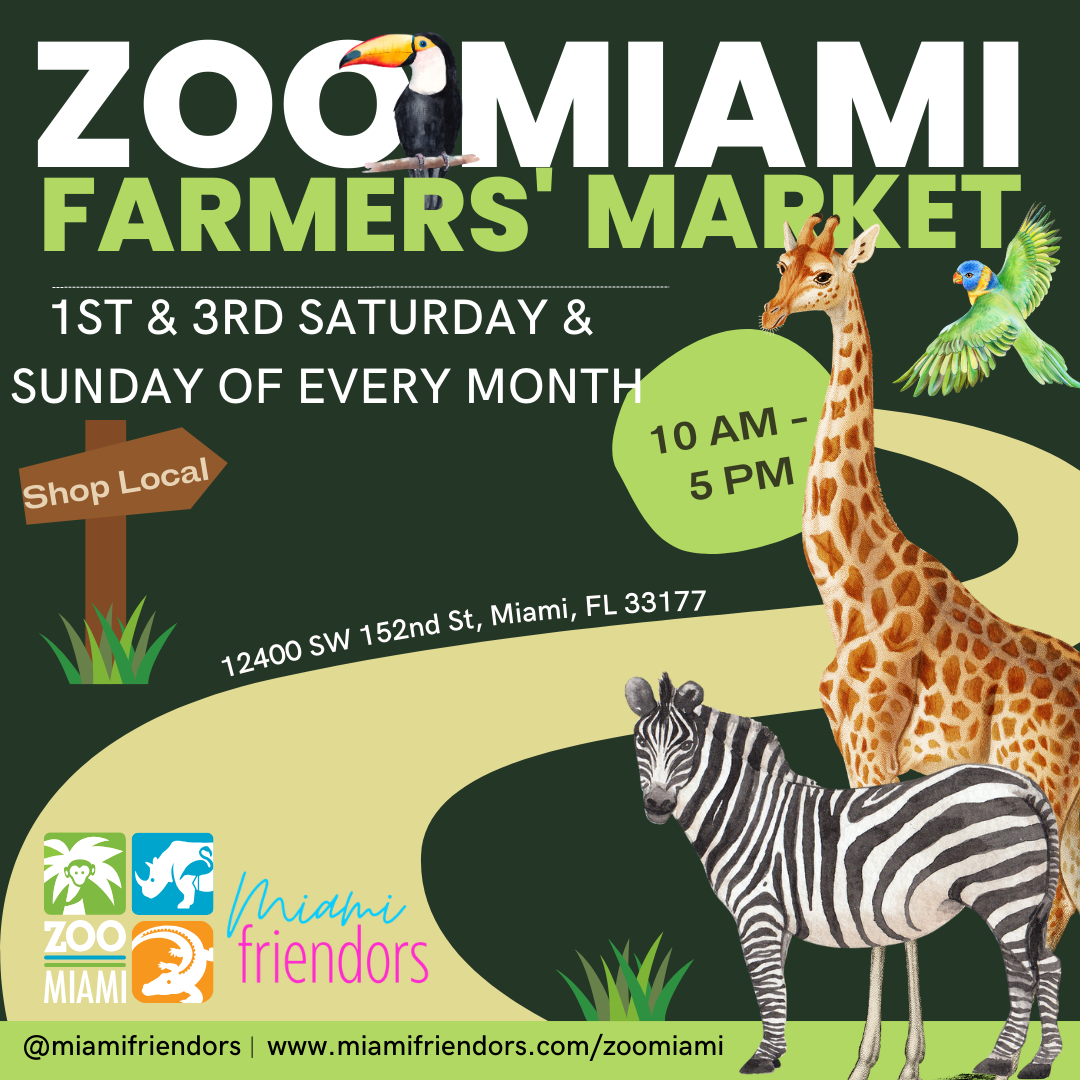 On behalf of Zoo Miami and Miami Friendors, we are excited to welcome you to the Zoo Miami Farmers Market! We’re thrilled to have you join us for this family-friendly event that brings together local makers, artisans, food vendors, and the community.